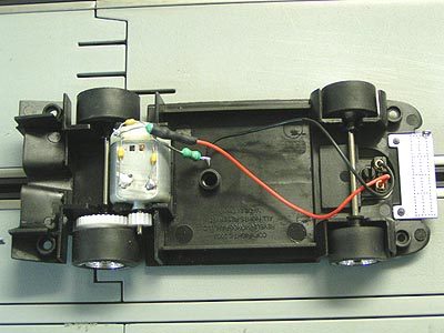 Just removing the magnet without weight added had lap times in the 5.6 second range. There is some room under the chassis for very thin sheet lead and/or the magnet pocket will allow some as well. I had some self-adhesive backed tire balancing weights and I applied a half ounce piece where the magnet pocket used to be. This helped a little with control but only dropped the lap times to 5.5. Of course, there is more to work with here and the more I play with it I am sure things will get better. The basic model is a decent platform to work with and I am sure other enthusiasts will find some great set-ups in the near future.